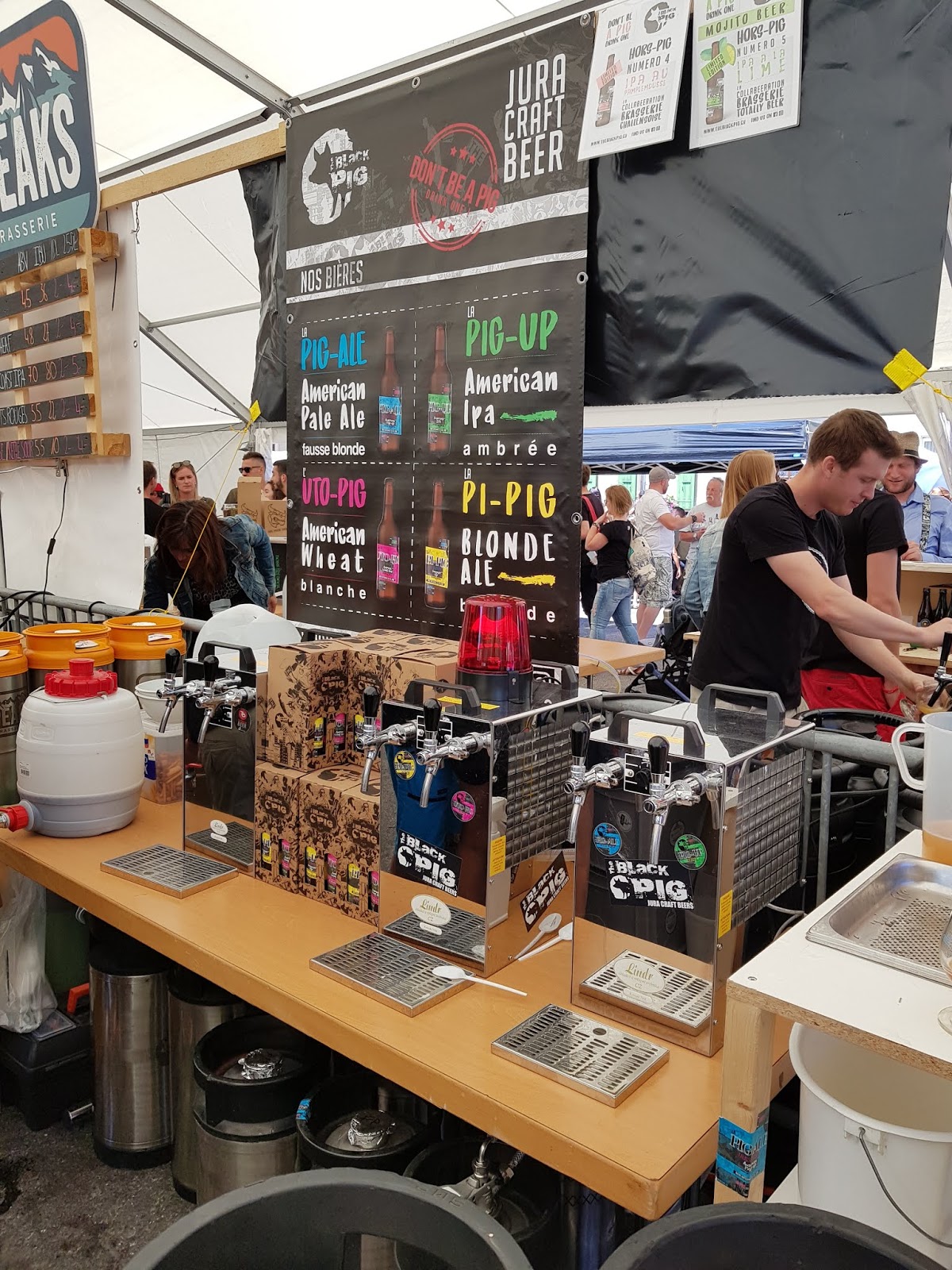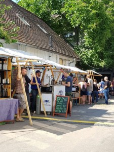 Auch für das leibliche Wohl wurde gesorgt; Hotdog, Mexikanisch, Hirschspezialitätenund sogar Racelette. Und wer lieber ein Glas Weisswein statt ein „Blanche“ wollte, bekam das natürlich an der „allgemeinen“ Bar. Bierneulinge konnten an einer begleiteten Verkostung teilnehmen (CHF 20.-). Man musste natürlich der Sprache mächtig sein, um alles zu verstehen. Zudem gab es ein Degustationsmenü, mit den passenden Bieren natürlich (Reservation erforderlich) Das Wetter hat super gepasst. Dank einer frischen Brise waren es angenehme 22 Grad. Die perfekte Degustationstemperatur!