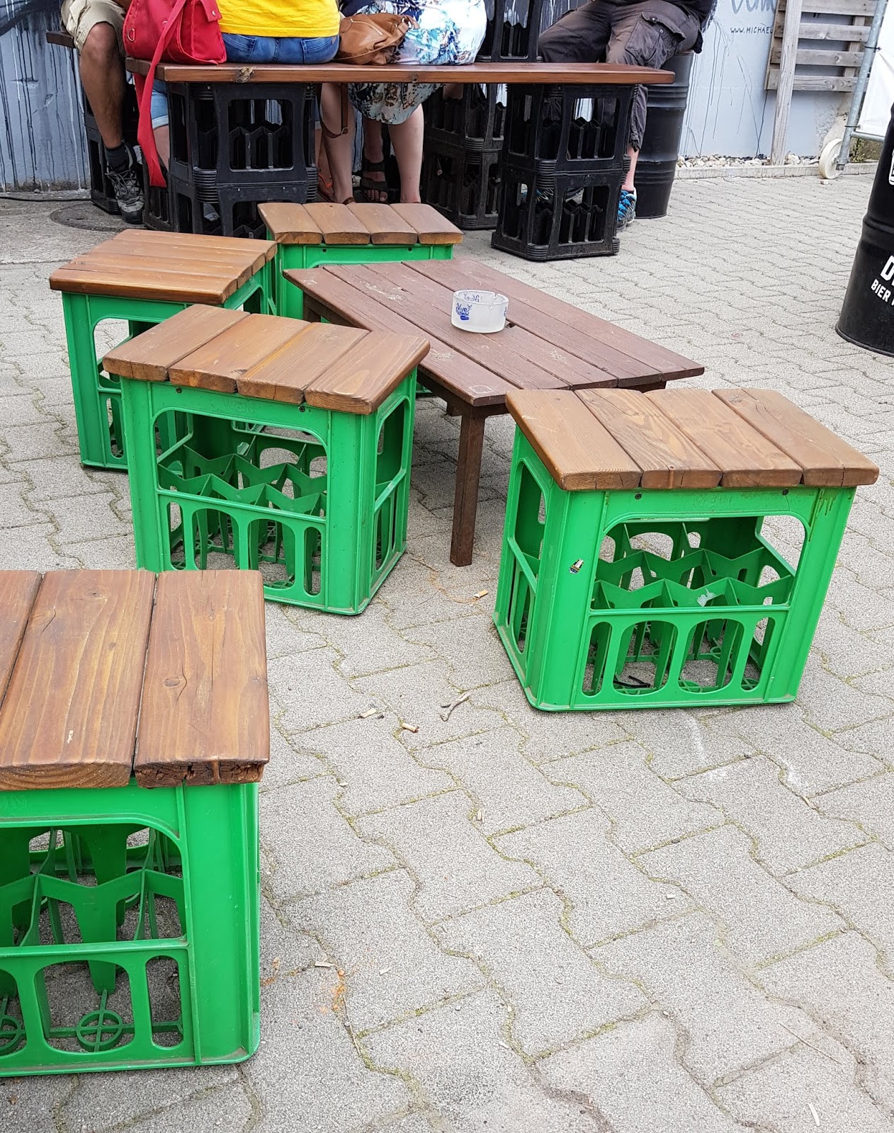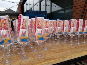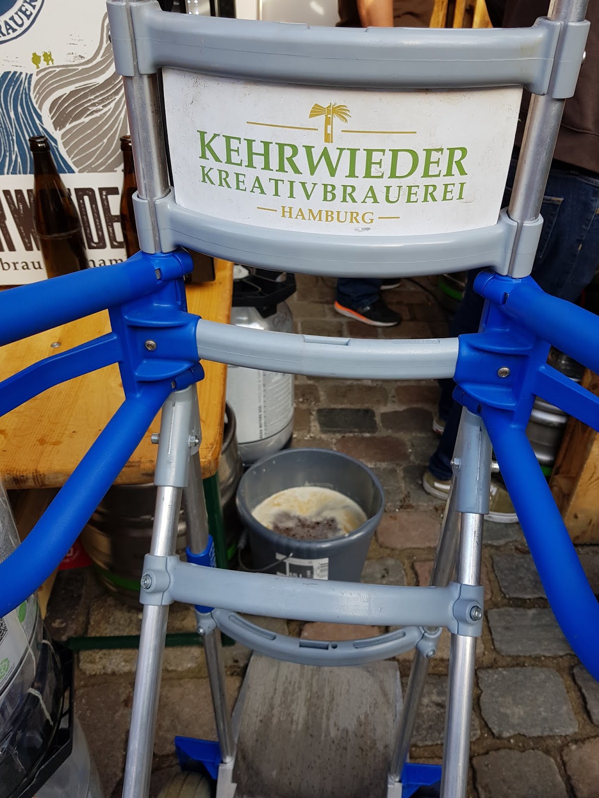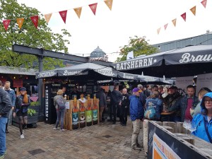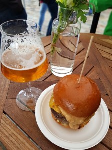 Der Anlass war sehr gut organisiert. Bei zwei Eingängen bezahlte man den Eintritt (5 Euro) und konnte sich dann ein Pfandglas erwerben. Die Preise der Biere waren unterschiedlich (1 – 3 Euro), je nach Grösse, Art und Brauerei. An den verschiedenen Ständen konnt bar bezahlt werden. Zum Glück hatte ich genügend Kleingeld dabei, da es doch nichts unangenehmeres gibt, als an einem solchen Anlass mit grossen Noten bezahlen zu müssen. Auch für das leibliche Wohl wurde gesorgt. Da das Festival auf dem Gelände rund um das „Alte Mädchen“ war, konnte man sich entweder dort im Restaurant verpflegen oder einem der Esstrucks draussen. Wir hattn einen wunderbare Hamburger.