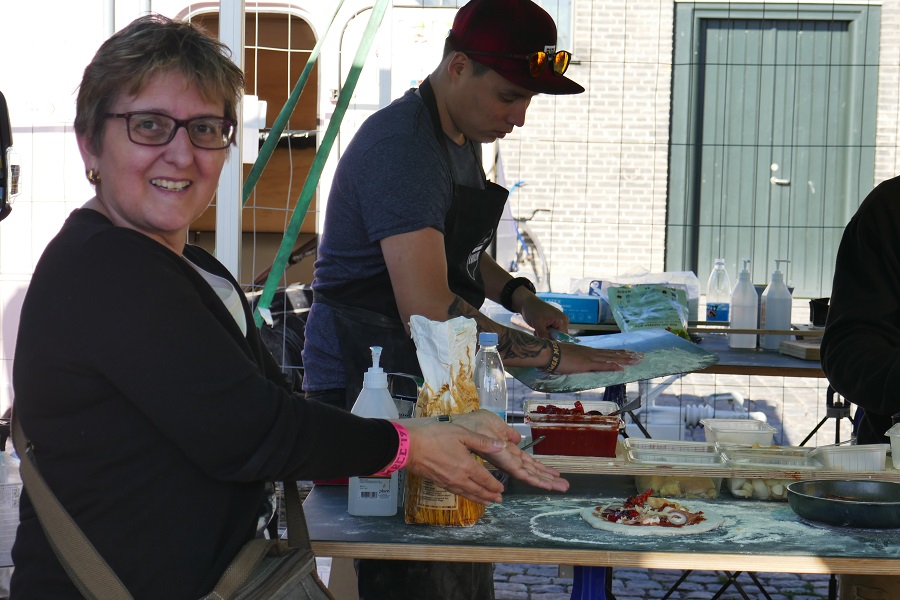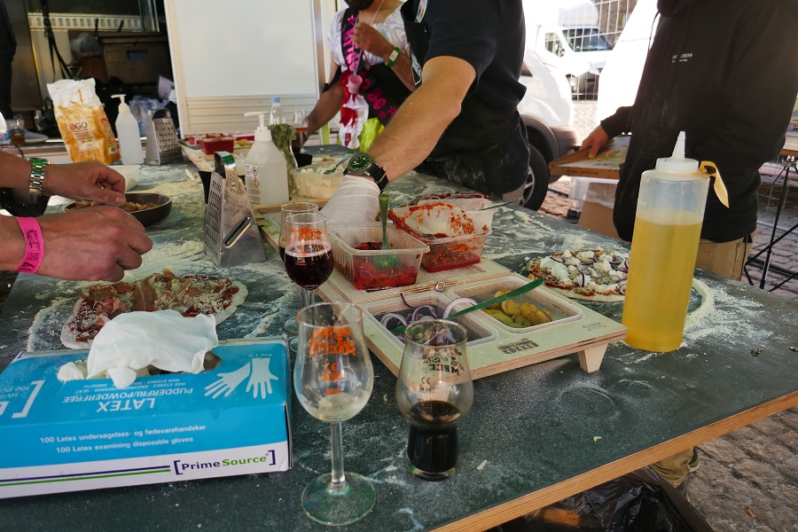 Natürlich haben wir auch Hunger und es hat sehr viele Möglichkeiten, sich auf dem Gelände oder ausserhalb zu verköstigen. Ich entscheide mich für eine handgemachte Pizza. Eine wirklich von mir – unter professioneller Anleitung – handmade Pizza. Eine lustige Idee, die auch noch gut schmeckt. Es gibt aber auch Ramen, Pulled Pork Burger, Taccos und einiges mehr.