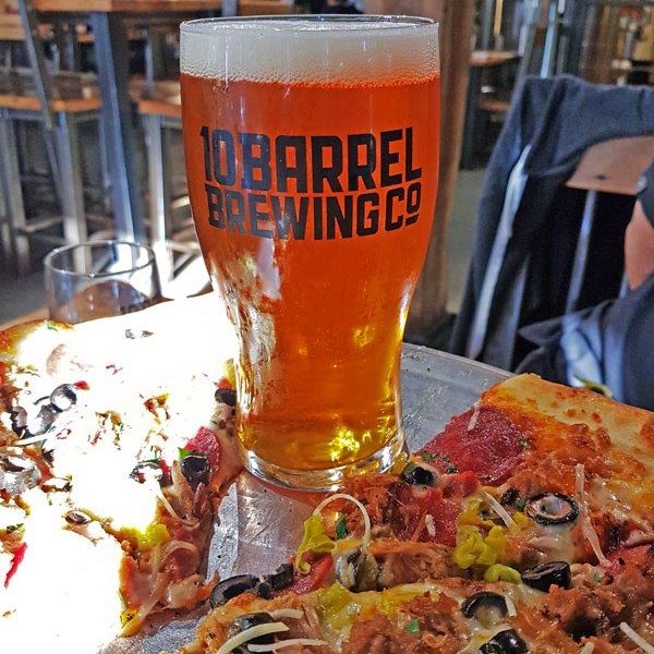 Die Fahrt empfinden wir als unendlich lang, da sie landschaftlich eher eintönig erscheint. Unser Motel in Boise liegt mitten in der Stadt, so dass wir einmal mehr zu Fuss unterwegs sein können. Da wir Oregon verlassen haben und nun in Idaho sind, haben wir eine Stunde ‚verloren‘. Es bleibt aber noch genügend Zeit um uns auszuruhen, ja sogar um Wäsche zu waschen. Gegen 17.30 Uhr sind wir dann auf dem Weg zu 10 Barrel Brewing, welches nur 5 Minuten von unserer Unterkunft entfernt liegt. Selbstverständlich hat es auf dem Weg wieder verschiedene Restaurants und Bars, eine lebendige Gegend also. Das Brewhouse von 10 Barrel ist riesig und man sitzt beinahe inmitten der Brauanlage. Ausserdem hat es einen schönen Aussenbereich mit eigener Bar. Zuerst nehmen wir ein 10-er (!) Flight mit Chips. Danach essen wir eine wunderbare 14’’ Pizza mit Salami/PulledPork. Dazu gibt es zwei IPAs. Die Biere von 10 Barrel sind angenehm und einfach zu trinken, ohne Ecken und Kanten. 10 Barrel Brewing gehört der weltgrössten Brauereigruppe Anheuser-Busch InBev. Wir sind zwar nicht so begeistert von solchen Getränke-Giganten. Aber die Biere von 10 Barrel Brewing schmecken uns trotzdem.