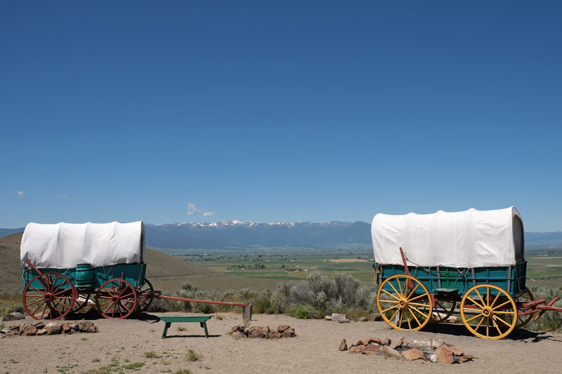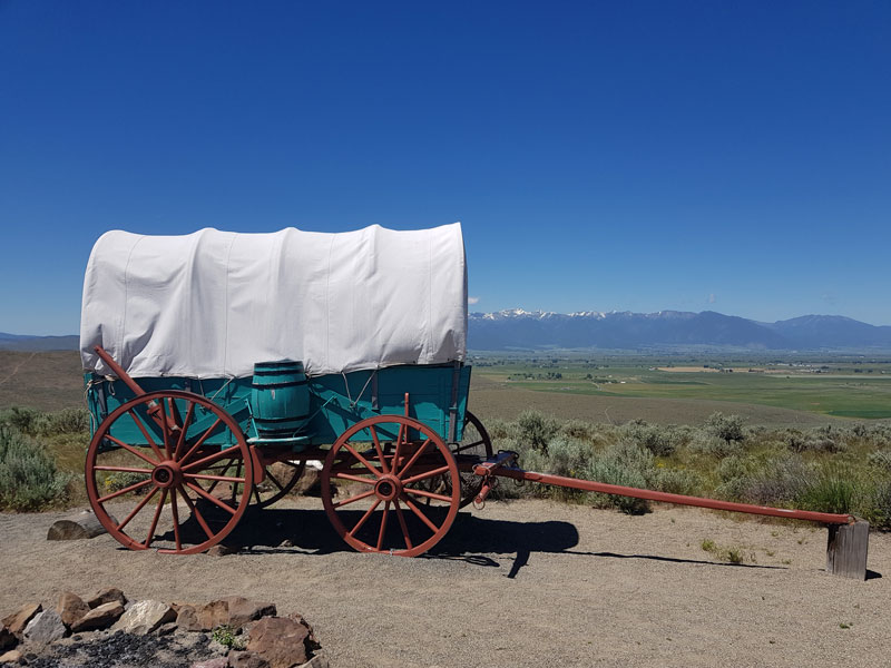 Auch heute müssen wir wieder 350 km hinter uns bringen. Die Fahrt geht zuerst in grosszügigen Kurven bergauf und dann wieder bergab. Auf dem Weg besuchen wir das Oregon Trail Interpretativcenter. Dort wird eindrücklich gezeigt, wie die Einwanderer vor beinahe 200 Jahren von der Ostküste Richtung Westen losgezogen sind, um ihr Glück zu finden. Es ist sehr informativ und interessant gestaltet, so dass man gut und gerne 2 – 3 Std dort verbringen könnte.