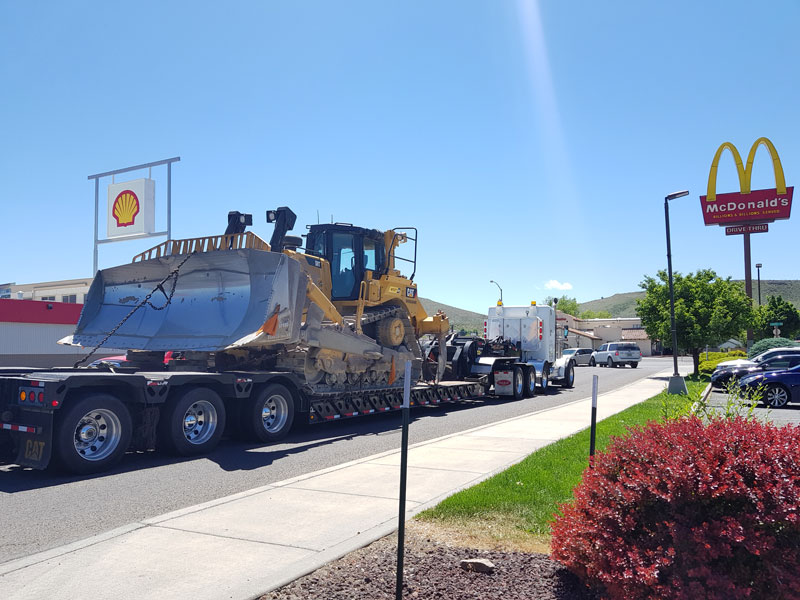 Da das Frühstück im Motel eher mager war, machen wir einen weiteren Zwischenstopp irgendwo unterwegs. Im McDonalds essen wir einen kleinen, kalorienreichen Snack. Danach tanken wir noch rasch und schon geht unsere Fahrt weiter. Wir sehen immer wieder unendlich lange Güterzüge und Roadtrains. Zum Glück konnten wir diesen Schwertransporter vor der Einfahrt zum Highway überholen!