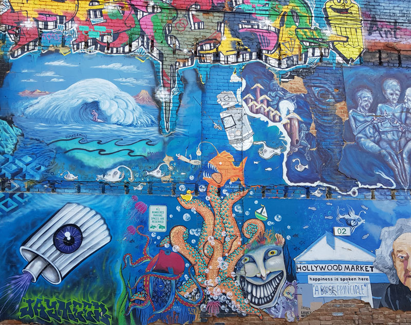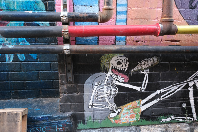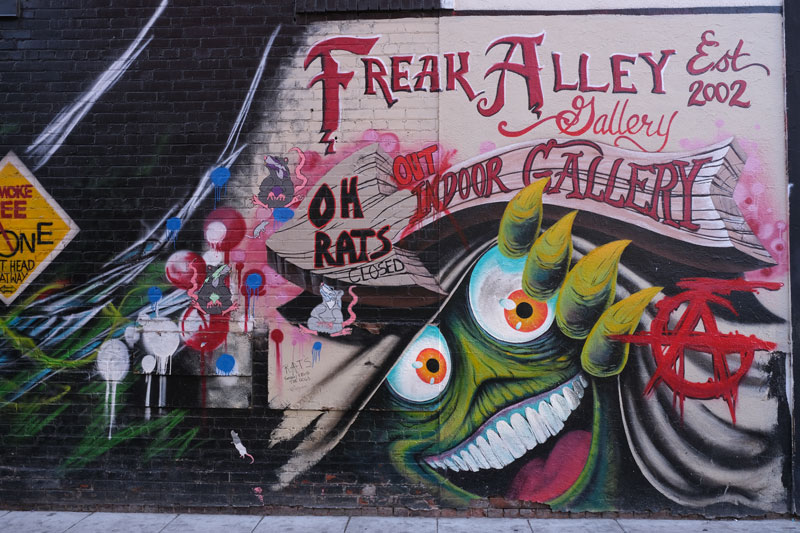 Nach unserem Nachtessen bei 10 Barrel Brewing stolpern wir über die Freak Alley Boise, einem bemerkenswertem Ort mit genialen Wandgemälden und Graffitis. Es soll die grösste Freiluftgalerie im Nordwesten der USA sein. Die Gasse ist wirklich eindrücklich und wir nutzen die Zeit, um die genialen Bilder zu fotografieren.
