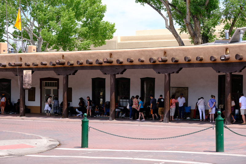 Santa Fe liegt auf ca 2000 Meter Höhe im Norden New Mexicos, nahe der Sangre de Cristo Range (Rocky Mountains). Es ist eine unvergleichliche Stadt mit einem geschichtsträchtigen Erbe, welches von der Kultur der amerikanischen Ureinwohnern und von spanischen und mexikanischen Einflüssen geprägt ist. Das wirkt sich auch auf die Küche aus! In Santa Fe wechseln sich bunte Freiluftmärkte, historische Gebäude, Kunstgalerien, Museen, schicke Restaurants und moderne Hotels ab. Uns fasziniert diese übersichtliche Stadt mit ihrem typischen Adobe-Baustil, aber auch mit den vielen interessanten Sehenswürdigkeiten, die man in der Umgebung besuchen kann (zB Dörfer der Pueblo-Indianer, Bandelier National Monument). Darum stand auch 2019 Santa Fee auf dem Reiseplan.
