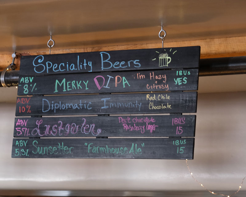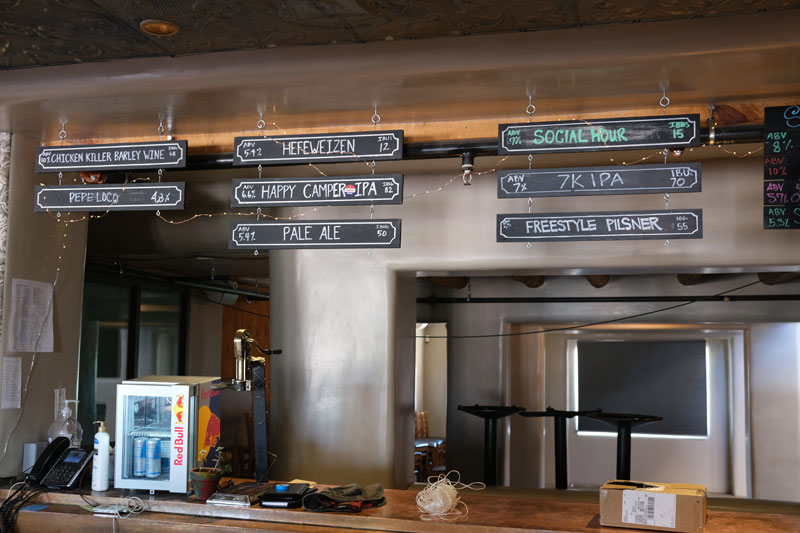 In der Stadt selber gibt es noch einen kleinen Taproom, den wir natürlich am nächsten Tag besuchen. Es ist eine kleine, gemütliche Bar in einem alten, umgebauten Häuschen, mit einem Garten. Dieser Taproom ist abseits der normalen Touristenpfade von Santa Fe und ist ein guter Ort, um mit Einheimischen ins Gespräch zu kommen. Und natürlich um gute Biere zu trinken und einfach zu relaxen.