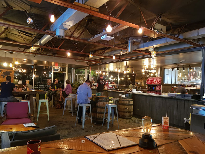 Am Schluss trinken wir an der Bar noch ein Lager, da es unterdessen doch etwas frisch geworden ist. Aktuell läuft noch Trivia, an welchem sich ein paar wenige Leute beteiligen. Trotzdem ist eine super Stimmung und das an einem Donnerstagabend. Auch der Pizzaiolo hat noch zu tun und die Pizzen riechen wunderbar. Schade, dass wir schon einen vollen Magen haben. Nicht nur vom Nachtessen sondern auch von den Bieren, die doch sehr nahrhaft waren. Kurz vor Mitternach fallen wir ziemlich gesättigt in unser riesiges Kingbed!