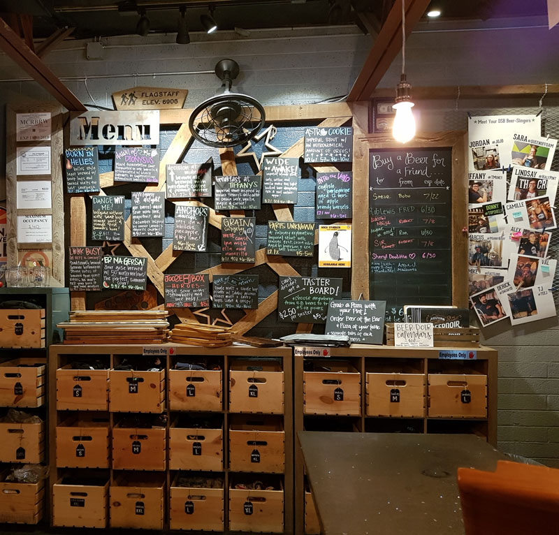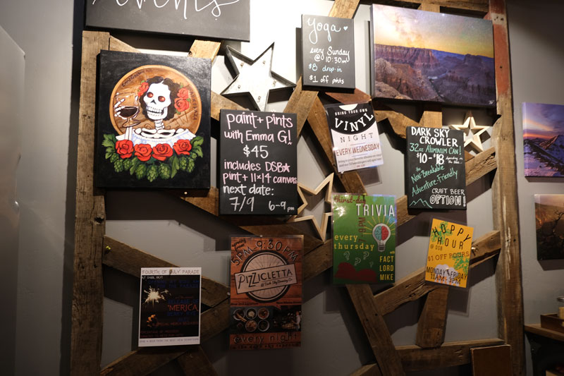 Unsere Reise geht bald zu Ende und unser letzter Halt ist Flagstaff, Arizona. Dank google haben wir die Dark Sky Brewing Co entdeckt, welche 2014 gegründet wurde. Wir haben ein Hotel in der Nähe gebucht, mit direktem Blick auf den Biergarten. Der Taproom ist in zwei Bereiche aufgeteilt: einer Bar und einem Restaurant, wo es sehr leckere Pizza zu essen gibt. Es gibt wöchentliche Programme wie Bier-Yoga, Trivia oder Vinyl Nights. Ein sehr lebendiges Taphouse!