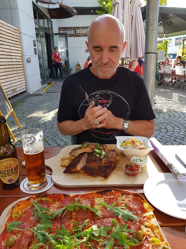 Natürlich müssen wir in Salzburg auch unseren Hunger stillen. Statt dies in der Altstadt in den überfüllten Restaurants zu tun, besuchen wir die Fuxn Volkswirtschaft. Währschaftes Essen zu moderaten Preisen in einem tollen Biergarten. Dazu eine eine gute Auswahl an Bieren. Besonders geschmeckt hat das Fuxn Salzburger Volksbier, das Fuxn Hausbier welches von der Biobrauerei Gusswerk gebraut wird. Untergärig, raffiniert und erfrischend (gefährlich süffig!!!). Wir kommen in den Genuss eines Bieres der kleinen Brauerei Brauton, welche nur ein paar Meter von der Fuxn Volkswirtschaft entfernt ist. Das American Pale Ale ‚Back from Space‘ wird mit dem gleichnamigen Song der Steaming Satellites beschallt. Ein Song, der perfekt passt. Eine fruchtige Hopfennote, gepaart mit rockiger Leichtigkeit, tiefgründig und gehaltvoll.