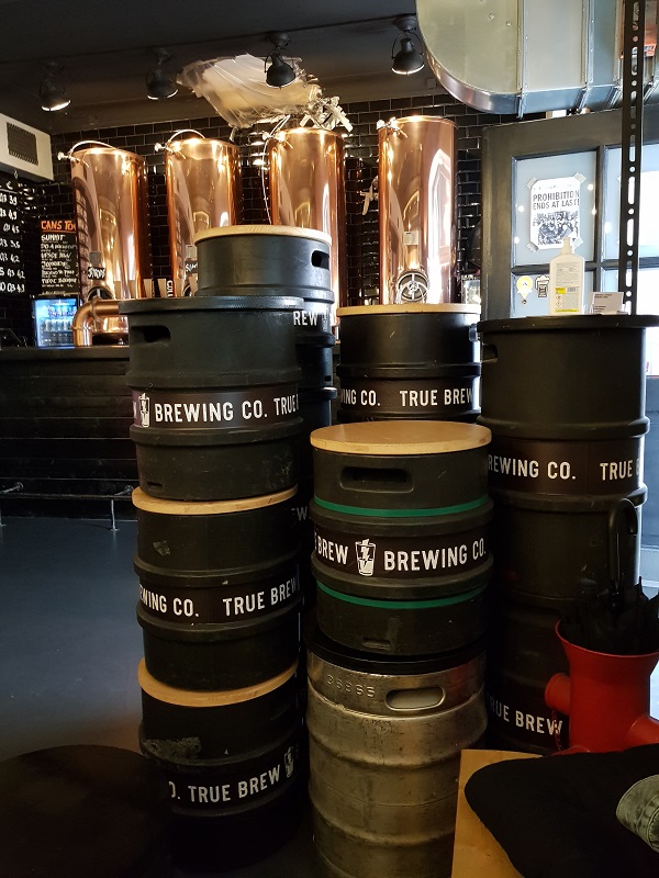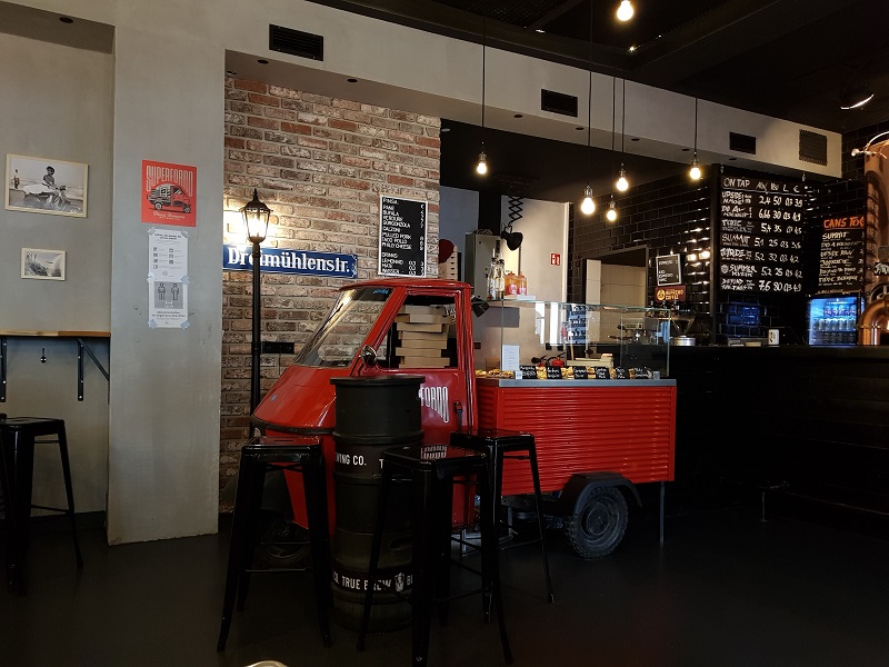 Nach einem späten Mittagessen in der Forschungsbrauerei – ja, da waren wir gerade erst – geht es weiter in die Innenstadt für ein kurzes Shopping. Danach fahren wir mit dem Bus in den Taproom der True Brew Brauerei (Dreimühlenstrasse 25). In dieser kleinen Brauerei gibt es zehn Biere vom Fass. Wer Hunger hat, kann diesen mit einer kleinen Pizza stillen. Die Pizzen werden in einer knallroten Ape (ein dreirädriges Rollermobil des italienischen Herstellers Piaggio) präsentiert. Die Einrichtung gefällt uns und lädt zum Verweilen ein. Wir verkosten verschiedenen Biere und geniessen die Ruhe des frühen Abends. Ein perfekter Ort um in entspannter Runde ein Feierabendbier zu trinken. Es finden auch regelmässig Taptakeover statt.
