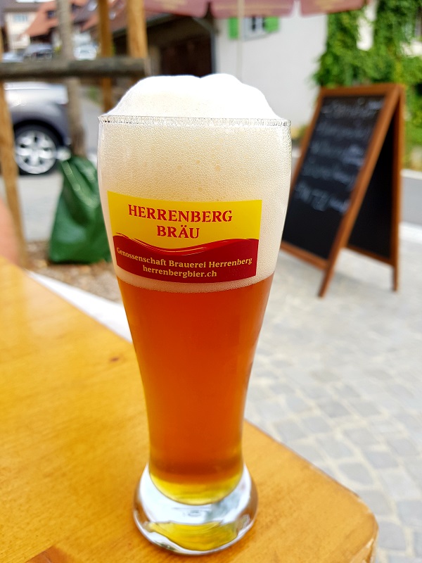 Jetzt habe ich definitiv Hunger und freue mich auf das Mittagessen in der Alten Brauerei. Ja, in Nuglar gibt es zwei (!!!) Brauereien. Zuerst wird ein Bier zum Einstieg getrunken. Vier kaltgehopfte Biere gibt es am Zapfhahn und in Flaschen.