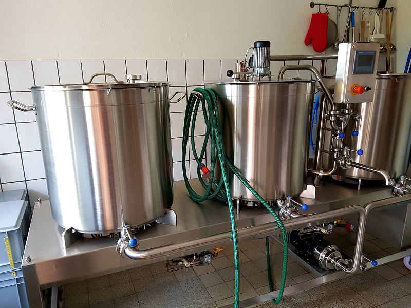 Nach dem Essen gibt es für jene, die noch Energie haben, eine kleine Führung durch die Brauerei. Das kupferne Sudwerk ist öffentlich einsehbar und das Herzstück der Brauerei sind die 900-Liter Sudanlage sowie die 100-Liter Versuchsanlage aus alten kupfernen Waschzubern. In der Alten Brauerei kann man auch selber brauen, dh es werden Bier-Seminare angeboten.