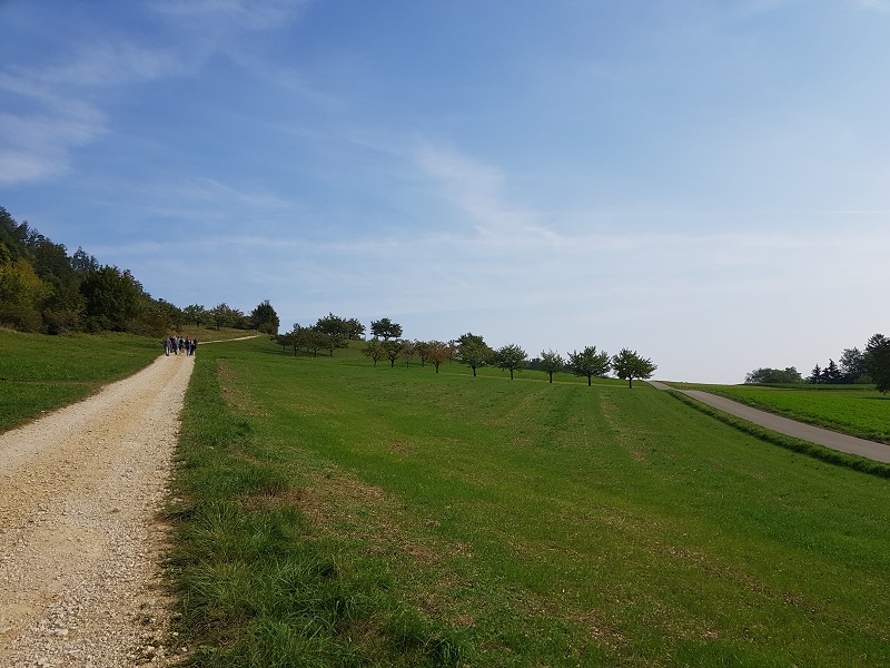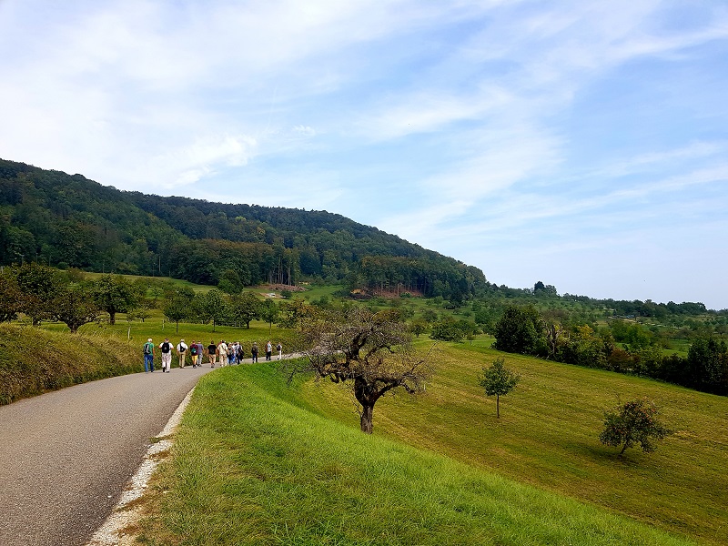 Wir treffen uns in Liestal und fahren mit dem Bus nach Büren, wo unsere gut 1-stündige Wanderung nach Nuglar startet. Büren ist ein kleiner Ort im Schwarzbubenland. Hier überwiegt der Acker- und Obstbau (vorwiegend Kirschbäume) sowie die Viehzucht. Früher wurde auch Wein angebaut, doch heute gibt es praktisch keine Rebflächen mehr. Unsere Wanderung führt vorbei an Feldern und Wiesen und ist relativ anstrengend, da es doch ziemlich ‘oppsi’ (rauf) geht.