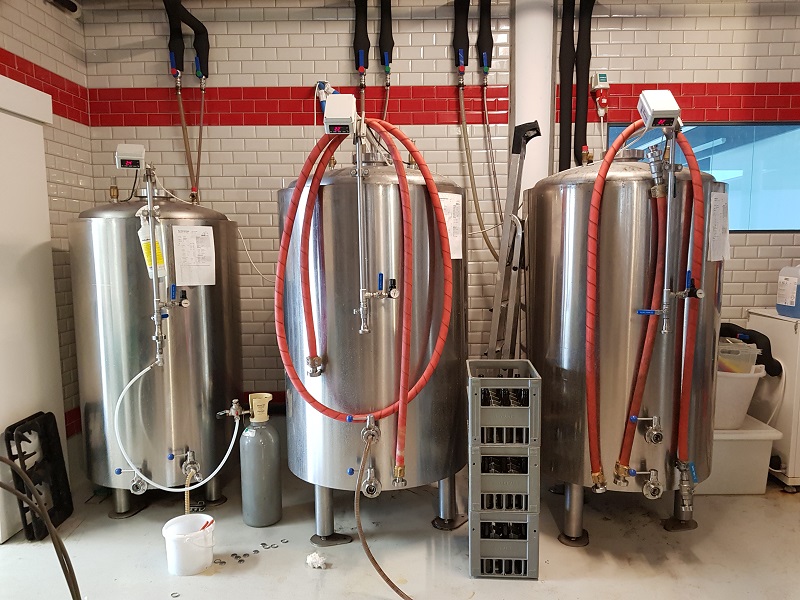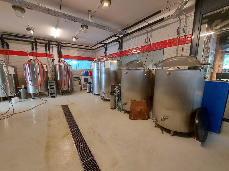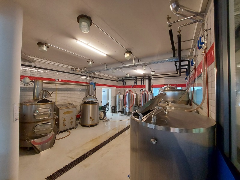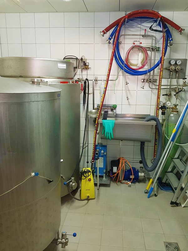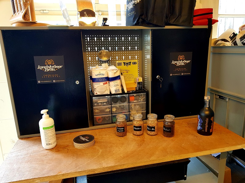 Urs (Inhaber/Brauer/Lieferant) führt mich durch die kleine Brauerei mit der tollen Brauanlage und erklärt sie mir ausführlich. Unglaublich, was auf so kleinem Raum gebraut werden kann.
