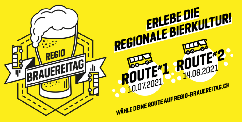 Die Region Nordwestschweiz ist in den letzten Jahren um zahlreiche Mikro- und Kleinbrauereien gewachsen. Am Regio Brauereitag hat man die Möglichkeit, fünf Kleinbrauereien zu besuchen, und deren Biere zu verkosten. Natürlich bekommt man auch einen Einblick in das Produktionsverfahren und verhungern muss man auch nicht. Und das allerbeste: man wird bequem im klimatisierten Bus von Brauerei zu Brauerei gefahren. Organisiert wird der Anlass vom Verein ‘Regio-Brauereien’, einem Kollektiv von Nordwestschweizer Kleinbrauereien, mit dem Ziel die regionale Bierkultur zu fördern.