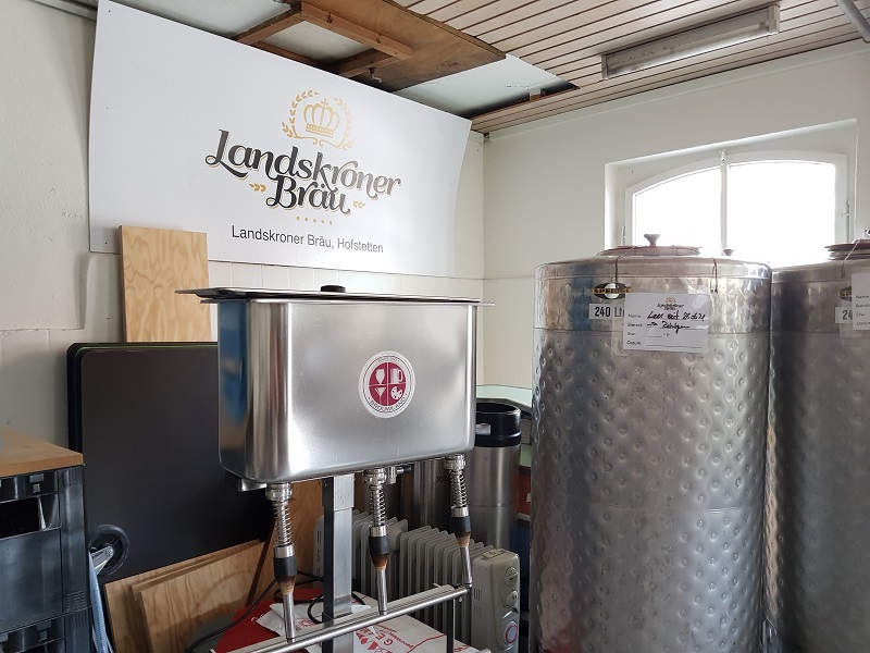 Nach gut 1 1/2 Stunden werden wir wieder vom Bus abgeholt und weiter geht die Fahrt nach Hofstetten. Der Verein Landskroner Bräu wurde im Oktober 2013 gegründet und aus dem kleinen Brauverein am Landskronweg (daher der Name), hat sich eine beachtliche Kleinstbrauerei entwickelt, welche nicht nur im Leimental bekannt ist. Wir werfen zuerst einen Blick in das ehemalige Milchhüsli, wo sich die Produktionsstätte befindet. Da es dort schon länger zu wenig Platz hat, wird ein Teil des Bieres auswärts gebraut und das Team von Landskroner Bräu denkt an einen Standortwechsel. http://www.landskroner.ch