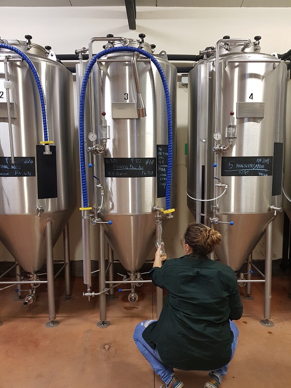 Auch das Double IPA schmeckt köstlich und danach gibt uns Laura zum Verkosten direkt aus dem Gärtank noch einen Schluck vom Country Lager und ein Glas des frischen Pale Ale, welches nächste Woche abgefüllt werden soll. Die Brasseria della Fonte braut ihre Biere mit Wasser aus der eigenen Quelle, baut eigene Gerste an und vom Taproom sehen wir auch das kleine Hopfenfeld. Einige wenige Saisonbiere werden mit dem eigenen Hopfen gebraut. Alle Biere der Brasseria della Fonte welche wir trinken dürfen überzeugen handwerklich. Ob Kellerbier, Farmhouse Ale, NEIPA oder Barrel Aged Stout, alle Biere die Samuele Cesaroni braut beeindrucken mit einer hervorragenden Qualität. Zum Glück sind wir vier Nächte im Agriturismo La Fonte, so können wir ohne Hast alle Biere probieren. Leider gibt es das Kellerbier (Galaktische Quelle) im Moment nicht in der Brasseria, wir können es aber im Restaurant zum Nachtessen bestellen.