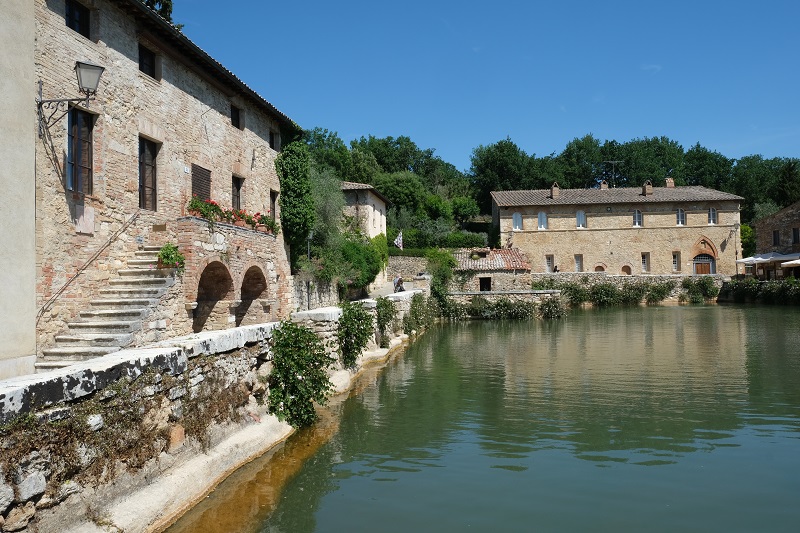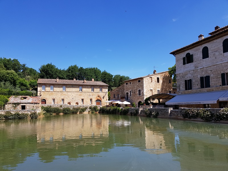 Diese Terme gehört zum Ort San Quirico d’Orcia und statt einem Dorfplatz hat dieser Ort einen Dorfpool