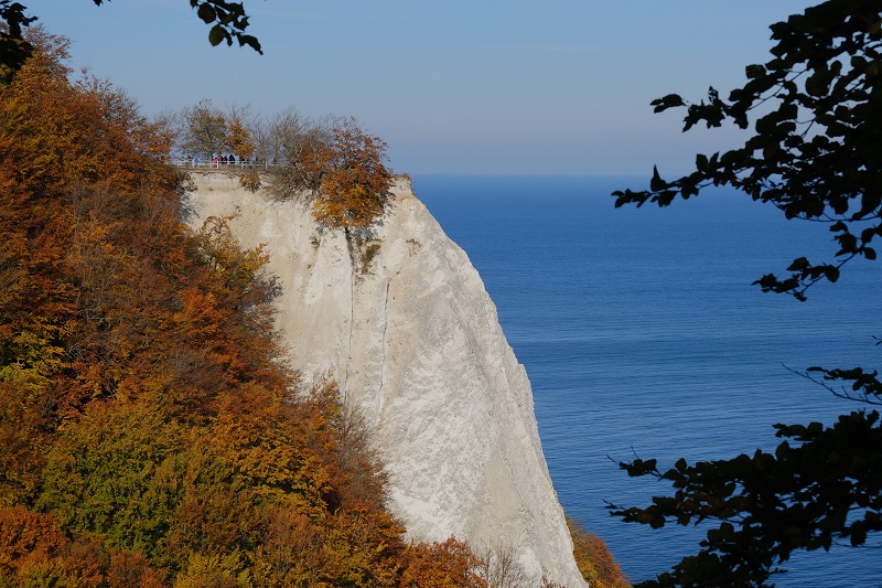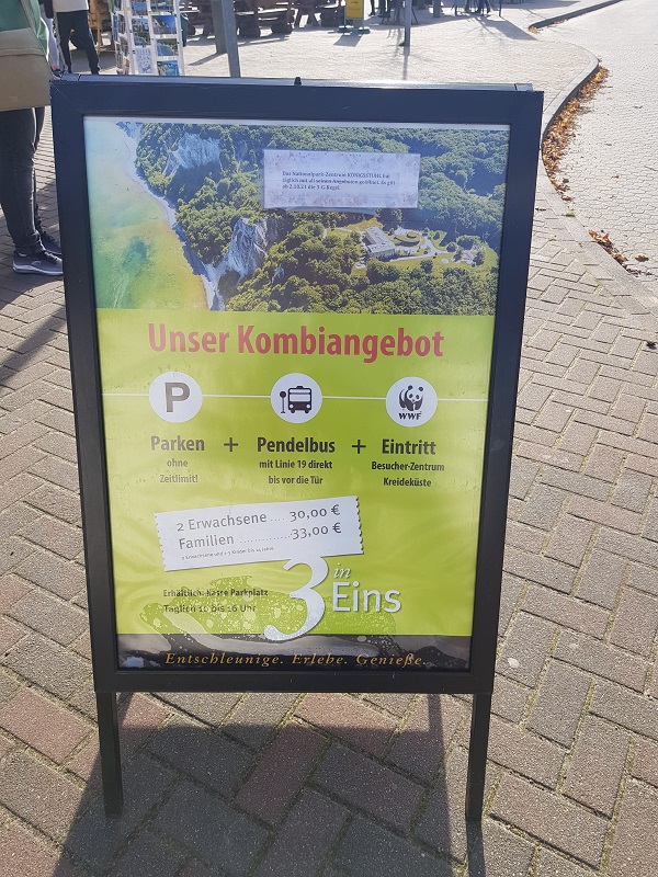 Am nächsten Tag geht es dann weiter: von Rostock nach Stralsund und über die Rügen-Brücke auf die Insel Rügen. Im Nord-Osten der Insel befindet sich unser Ziel: der Nationalpark Jasmund. Man kann nicht im Naturschutzgebiet parkieren, sondern nur auf Parkplätzen an den Eingängen zum Schutzgebiet. So fahren wir direkt zum Grossparkplatz Hagen und kaufen uns dort ein Kombiticket (Parkieren + Busshuttle + Eintritt in das Besucherzentrum bzw den Königsstuhl). Der Shuttlebus fährt in regelmässigen Abständen zum Nationalpark-Zentrum und so sind wir in kurzer Zeit am Ziel. Wir gehen direkt auf die Aussichtsplattform, welche sich auf dem Königsstuhl befindet. Da es noch nicht so viele Leute hat, können wir die Aussicht in aller Ruhe geniessen. Ideal, um einige schöne Fotos zu machen. Leider ist es etwas lärmig, da zurzeit eine neue Plattform gebaut wird, die noch einen spektakuläreren Ausblick bieten wird.