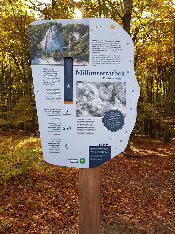 In der interaktiven Erlebnisausstellung im Nationalpark-Zentrum erfährt man vieles über den Königsstuhl, die Flora und Fauna. Der Nationalpark Jasmund beherbergt ein einzigartiges Stück Natur: die fast unberührten Buchenwälder. Wir machen einen kleinen Spaziergang zur Victoriasicht, wo man einen wunderbaren Blick auf den Königsstuhl hat. Diese Plattform kann man ohne zu bezahlen besuchen und von hier hat man eine perfekten Blick auf die einzigartige Felsformation des Königsstuhls.