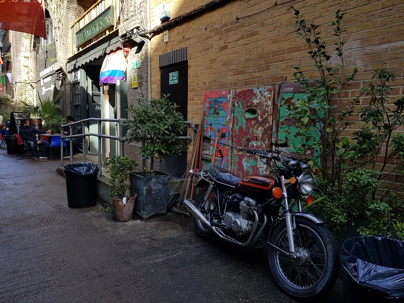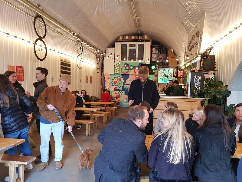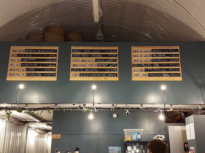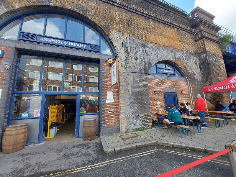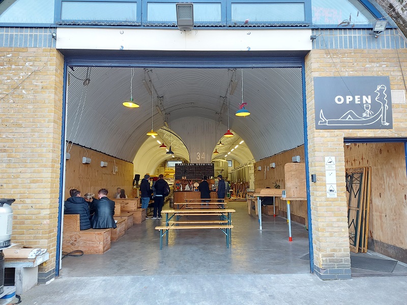 Bevor wir in die Brauereien eintauchen, besuchen wir den Maltby Street Market. Unterdessen hat es wieder Hunger gegeben. Der Maltby Streetmarket wurde 2010 eröffnet und wurde schnell zu einem beliebten Wochenendziel. Malerisch eingebettet unter den Eisenbahnbögen findet man World Food, diverse Bars und man kann frische Produkte kaufen. So tauchen wir in diesen Mikrokosmos ein, geniessen ein fantastisches, frisches Steaksandwich und dazu ein Bier: