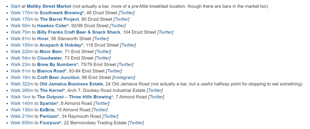 Ein ganzer Tag reicht nicht, um sich der ganzen Bermondsey Beer Mile widmen zu können. Auf der unoffiziellen Homepage der Bermondsey Beer Mile findet man hilfreiche Informationen, so dass man das Beste aus dem Besuch rausholen kann.