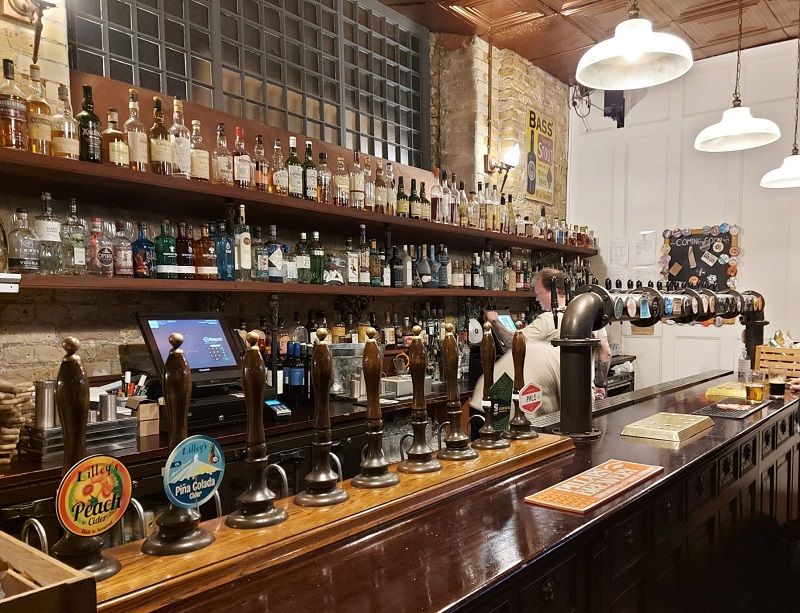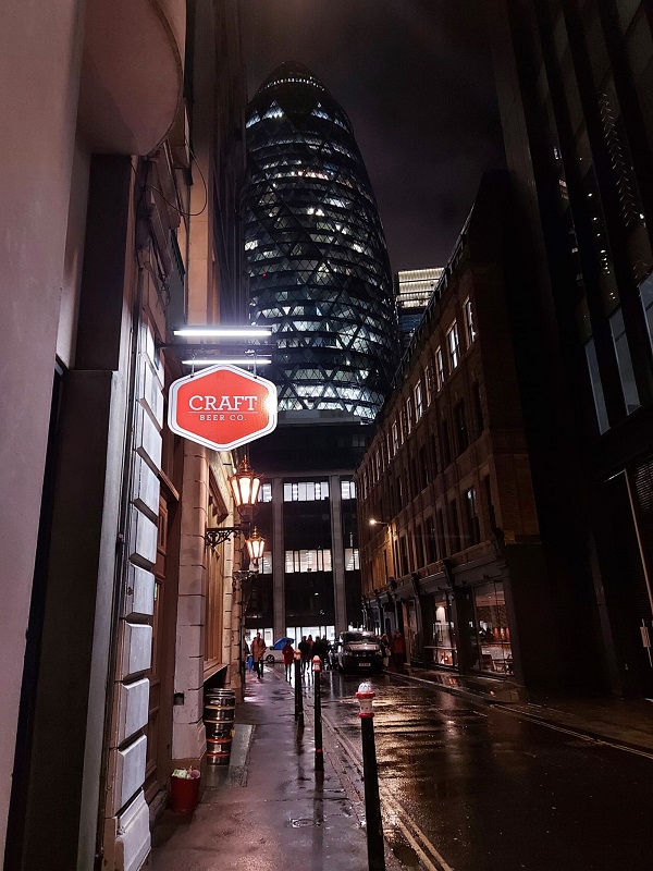 Unser nächstes Ziel ist das Craft Beer Co St Mary Axe, nur wenige Minuten unserer Unterkunft weg. Es ist ein liebevoll restauriertes Pub, welches im Schatten von ‘The Gherkin’ liegt. An 5 Handpumpen gibt es Real Ales (cask) und an 18 Zapfhähnen (keg) weitere Craftbiere. Das Pub erstreckt sich über zwei Ebenen und man erhält auch Hochprozentiges und Kleinigkeiten zu Essen. Es hat sehr viele Leute im Pub aber wir finden trotzdem Platz und geniessen folgende Biere: