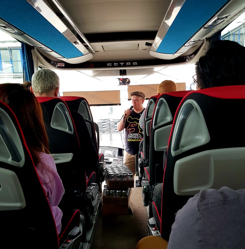 Heute steht der Ausflug für die Gold-Ticket-Holder auf dem Programm. Um 11.00 Uhr ist Abfahrt bei Warpigs und wir sind bereits um 10.30 Uhr vor Ort, damit wir unser wristband und unsere Geschenktasche entgegennehmen können. Selbstverständlich sind schon andere Leute dort, welche bereits das 1. Bier in der Hand haben.