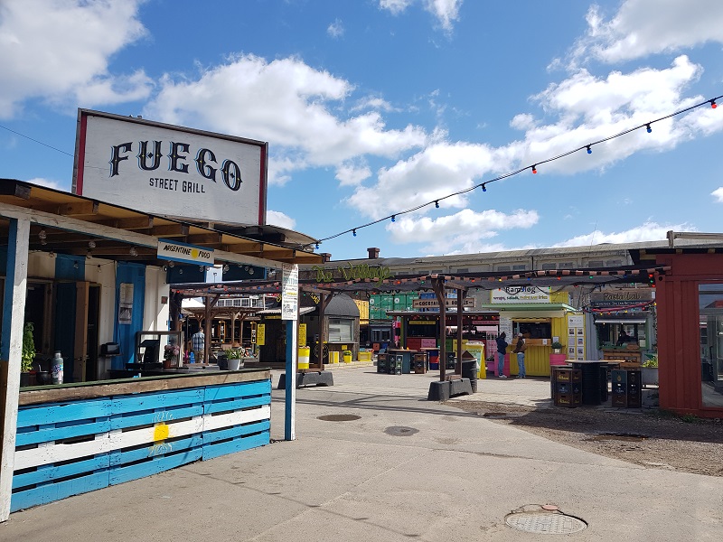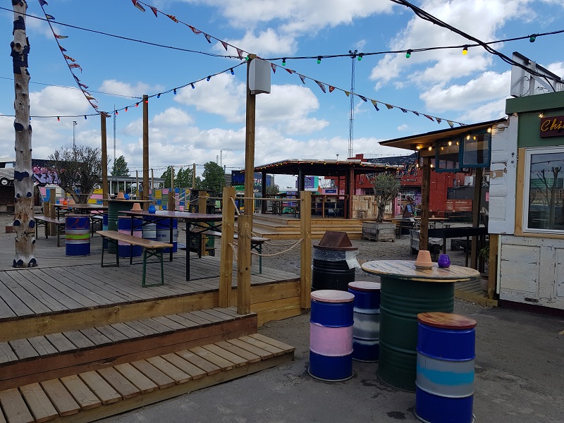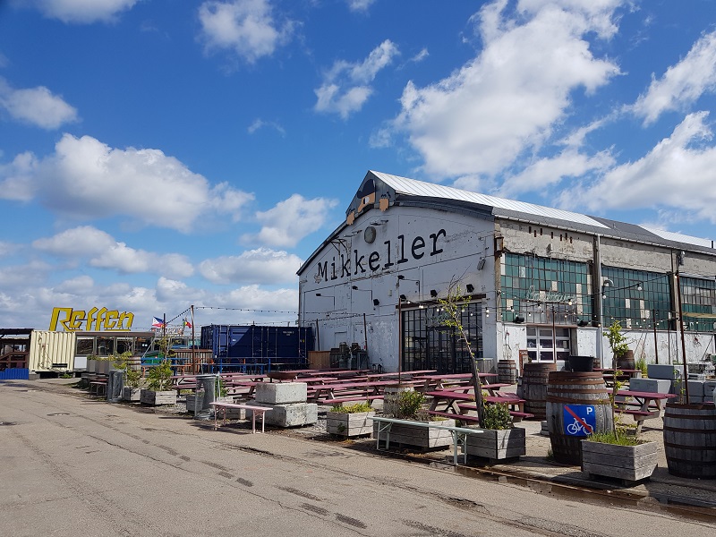 Tag 3 Heute wollen wir weitere TTO besuchen. Zuerst decken wir uns im Lidl mit Wasser ein, damit während den nächsten Tagen nicht dehydrieren. Danach fahren wir mit dem Bus bis Nyhaven, einer der schönsten Strassenzüge Kopenhagens und flanieren entlang des Wassers in Richtung Meerjungfrau. Wir besuchen sie jedoch nicht, da wir davon ausgehen, dass es sehr viele Touristen haben wird – 2 Kreuzfahrtschiffe sind vor Anker und die Meerjungfrau gehört zu den Top-Sehenswürdigkeiten von Kopenhagen. Von der Haltestelle Nordre Toldbod nehmen wir das Boot bis Refshaleøen, da wir zu Baghaven wollen. Leider sind wir zu früh dort, es ist noch nicht geöffnet. Sind die Angaben auf der Homepage bzw im Facebook falsch? So spazieren wird durch diesen bunten Ort, vorbei an vielen Bars und Foodständen mit Essen aus aller Welt. Aber so früh am Morgen ist selbstverständlich noch nichts los. Am Abend geht hier sicher die Post ab.