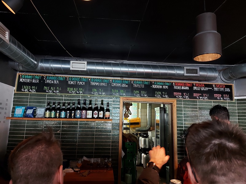 Als wir bei Himmeriget ankommen hat es schon sehr, sehr viele Leute, obwohl wir recht früh dort sind. Wir finden draussen auf einer Bank noch zwei freie Plätze. Der Wind ist zwar sehr unangenehm, aber was macht man nicht für tolle Biere von Alvarado Street?