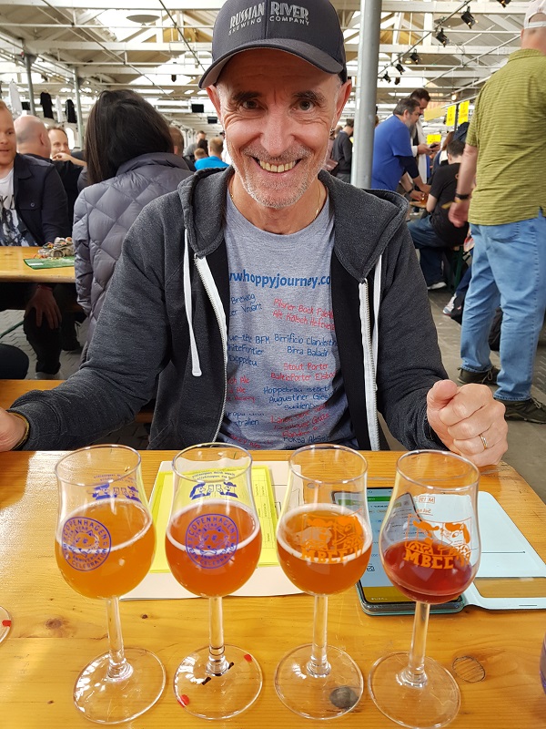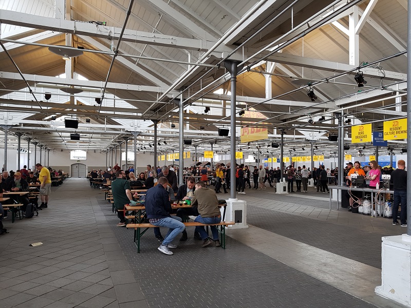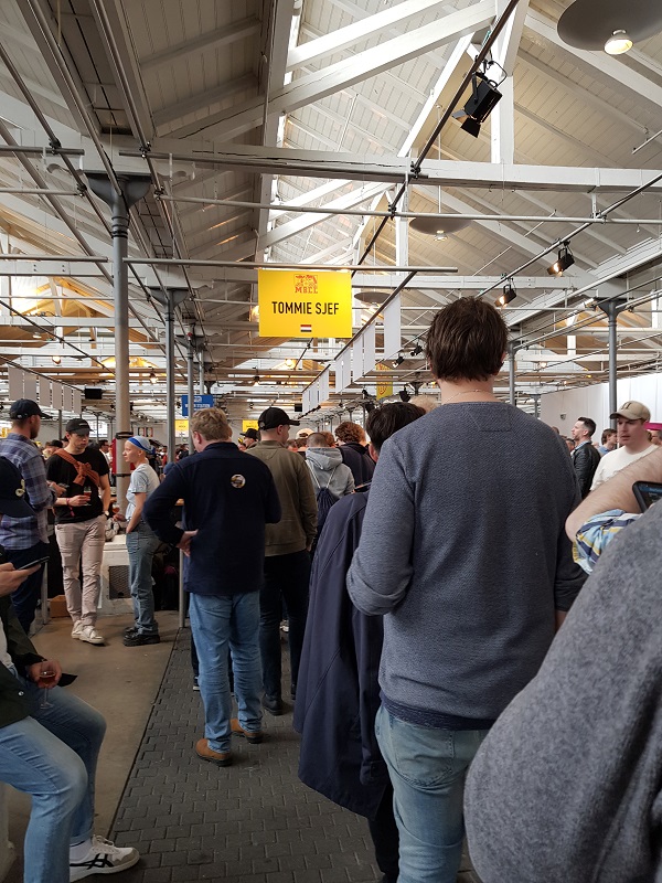 Heute geht es los! Wir frühstücken früh und ausgiebig, um eine gute Grundlage für den Tag zu schaffen. Da wir Gold-Tickets haben, können wir bereits um 09.40 Uhr in die Øksnehallen. So laufen wir um 09.20 Uhr beim Hotel los und kommen, ohne Anstehen, schnell in den Gold-Ticketholder-Wartebereich. Pünktlich um 09.40 Uhr ertönt der Gong und wir werden mit der Menge in die Halle getragen. Rolf und ich schwärmen los – Rolf zu Moksa und ich zu Pulpin Rock. Dann suchen wir uns einen Tisch, von welchem wir uns die nächsten 3 Stunden nicht mehr wegbewegen werden. Da wir je zwei zusätzliche Gläser mitgenommen haben, schwärmt Rolf noch zweimal aus, so dass wir schlussendlich vor 6 Gläsern zum Verkosten sitzen. Lasst die Spiele beginnen!!! Wie letztes Jahr bilden sich bei 3 Sons Brewing, Omnipollo und Bofkont lange Schlangen. Und bei Bofkont sind die Biere schon bald sold-out.