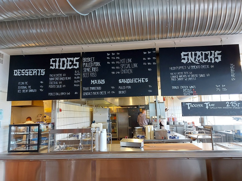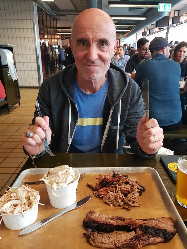 Auch auf der Rückfahrt gibt es wieder diverse Biere zu verkosten – unsere Nachbarn sind sehr grosszügig und ihr gekühlter Rucksack ist noch nicht leer. Um 18 Uhr sind wir zurück bei Warpigs und da der Ausflug doch etwas Hunger gegeben hat, gönnen wir uns noch ein typisches Warpigs-Blech mit Brisket, Pulled Porc, Kartoffelsalat und Cole Slawe. Dazu selbstverständlich ein Bier.
