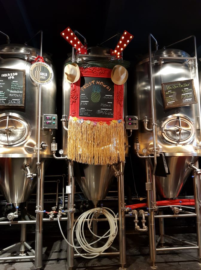 Nach dem ersten Bier bekommen wir ein zweites in die Hand gedrückt, denn zu einer Brauereiführung gehört ein Wegbier. Iris zeigt uns, wo die Astra St. Pauli Biere entstehen. Wir sind überrascht, dass auf so kleinem Raum so eine Menge tolle Biere gebraut werden können. Unsere Bewunderung gilt dem Chefbrauer Marlin, der mit den knappen Platzverhältnissen zurechtkommt.