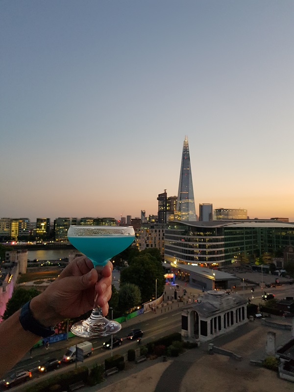 Zurück im Hotel geniessen wir noch einen speziellen Gin Tonic in der Rooftop Bar, wo wir einen fantastischen Blick auf den Tower haben.