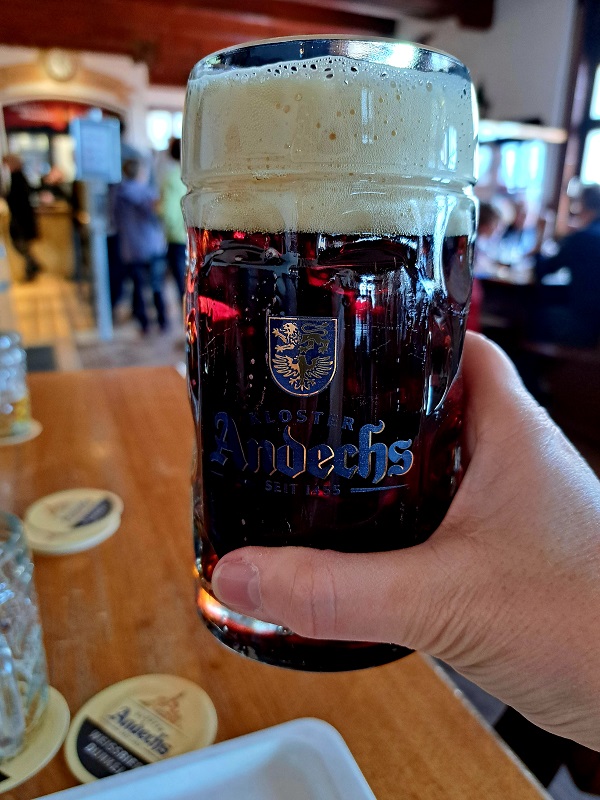 Heute steht das Kloster Andechs auf dem Programm. Mit der S 8 und dem Bus gelangen wir in knapp einer Stunde und perfekt auf die Mittagszeit auf den Klosterberg. Das Kloster Andechs verfügt aber auch über einen riesigen Besucherparkplatz inkl Wohnwagen-Stellplätzen. Die Anfahrt mit Bahn/Bus ist aber zu empfehlen, da es der Doppelbock doch in sich hat mit seinen 7.1%.
