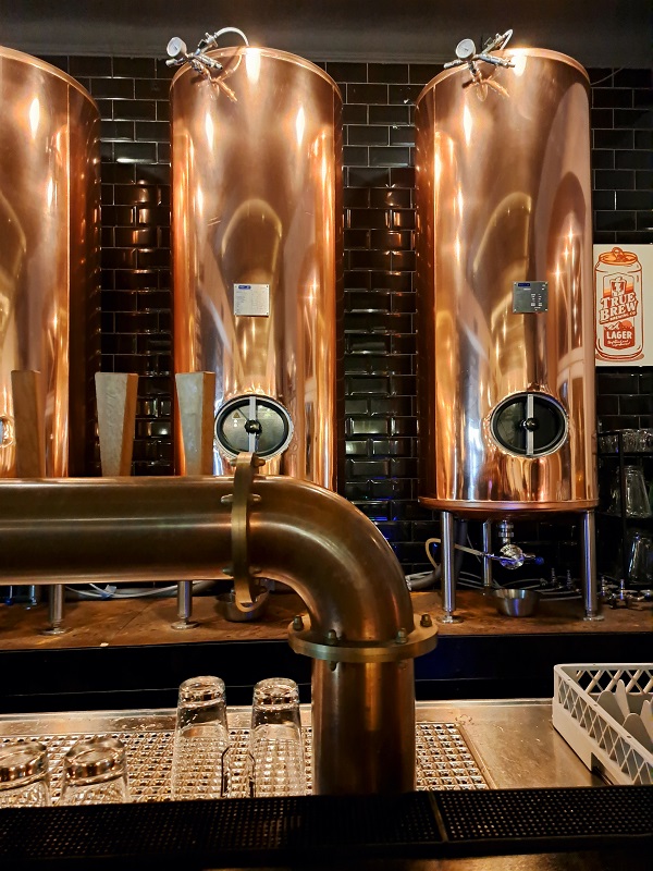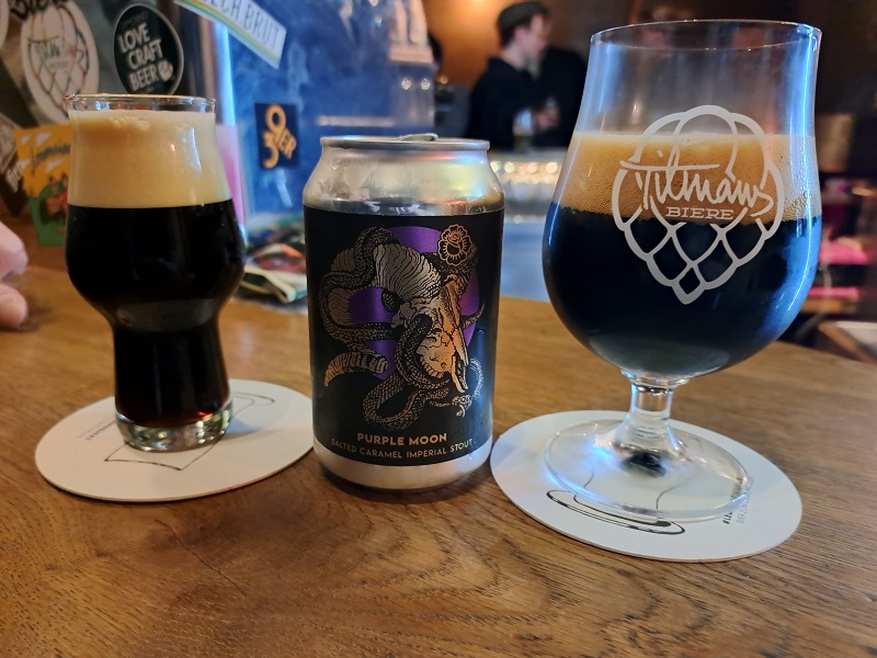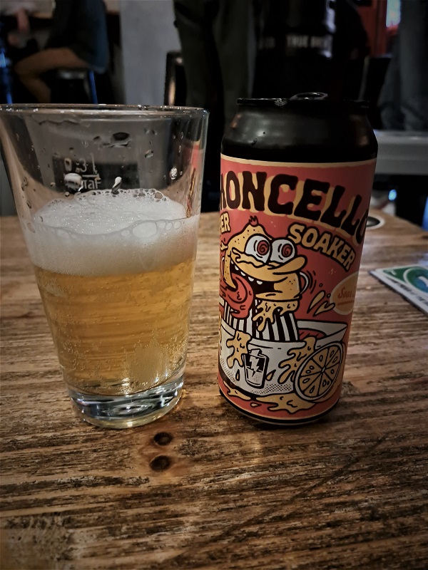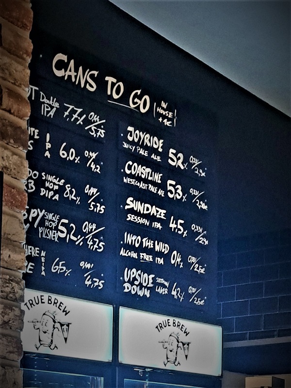 Zum Abschluss gehen wir zurück ins Biermuda Dreieck und zu TrueBrew. Es ist Samstagabend und darum hat es auch hier viele Leute. Die Biere kommen bei TrueBrew direkt aus dem Tank. Es gibt aber auch Dosen. Verhungern muss man auch nicht. Feine Pizzen werden angeboten. Ich entscheide mich für ein alkoholfreies Bier mit dem Namen Into the Wild. Es ist immer spannend zu sehen bzw zu schmecken, wie Brauereien das Thema Alkoholfrei umsetzen. Für Rolf gibt es ein Fruited Sour aus der Dose: Kick Out the Jams: Plum & Cinnamon. Zum Schluss bei TrueBrew gibt es das Limoncello Supersoaker, ein Sour IPA. Schmeckt sehr erfrischend.