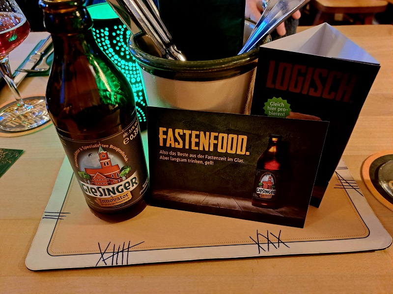Wir wollen uns bei unserem Besuch auf vier Starkbiere beschränken. Zum einen, weil es dieses Getränk meist nur in Gefässen von 5 dl oder sogar 1 Liter gibt. Zum anderen ist das Starkbier mit seinem hohen Alkoholgehalt nicht ganz ungefährlich. Und bei uns hat der Genuss erste Priorität.