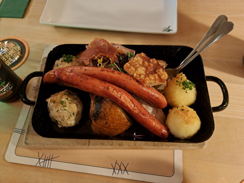 Eigentlich interessiert uns noch das Starkbier vom Hofbräuhaus (Delicator). Also rasch ins Hofbräuhaus und wir finden sogar einen Platz. Aber es hat uns schlichtweg zu viele Leute, das Gedränge ist gross (wie immer), es ist uns zu laut und so dass wir die Flucht ergreifen. Die Bedienung hat uns eh übersehen, also was soll’s. So lassen wir uns im Augustiner Klosterwirt auf den Maximator ein. Dazu etwas Kleines essen, denn der Hunger hat sich unterdessen schon wieder gemeldet.