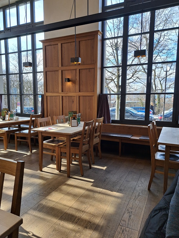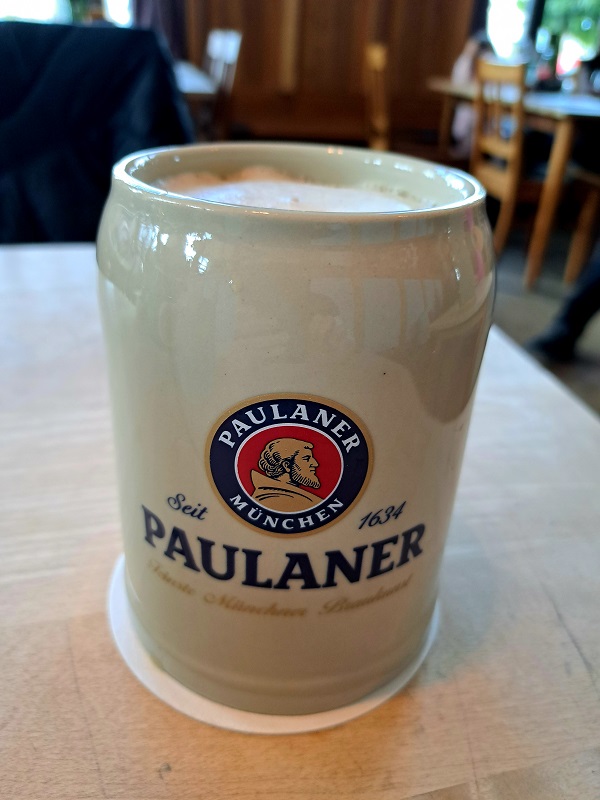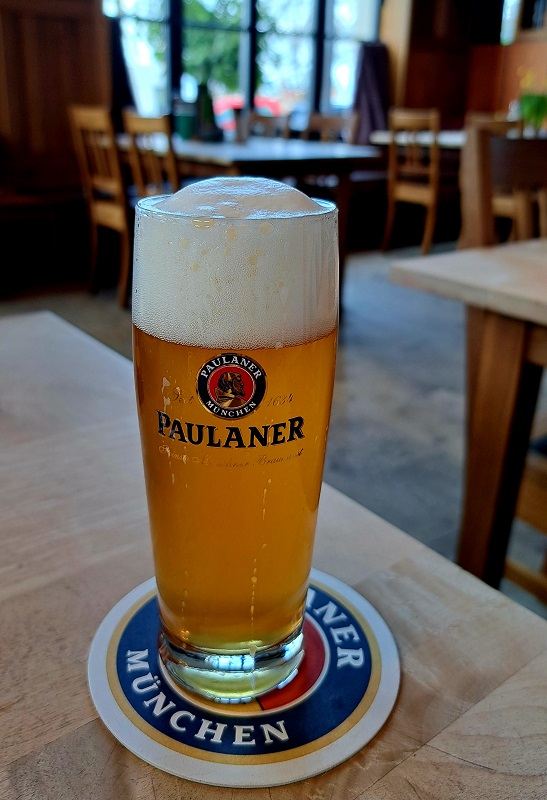Und so machen wir es auch. Wir gehen zur Mittagszeit auf den Berg. Es ist noch ruhig und das Wirtshaus ist mässig besetzt, so dass wir ohne Probleme einen Tisch bekommen. Auf dem Nockherberg werden in der Hausbrauerei Biere gebraut, die es nur hier zu geniessen gibt. So stehen ein Helles, ein Münchner Dunkles und ein Weizenbock auf der Karte. Das Bayrisch IPA (Saisonbier) ist leider schon ausgetrunken. Dafür gibt es den Salvator frisch vom Fass.