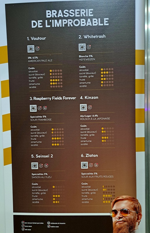 Sehr grosse Brauereien finden wir am Salon de la Bière nicht. Ausser White Frontier, 7Peaks Brasserie, Blackpig Brew und Drunk Beard Brewing kenne wir so gut wie keine der anwesenden Brauereien. Das macht das ganze sehr spannend. Stouts und Porter findet wir nur wenige, es überwiegen die helleren Bierstile. Aber wir trinken einige etwas speziellere Biere wie zB die Experimental Gose von Blackpig oder ein Bier mit Rosmarin, Thymian, Honig, Zitrone und Ingwer von La Cave. Beide einzigartig und sehr lecker.