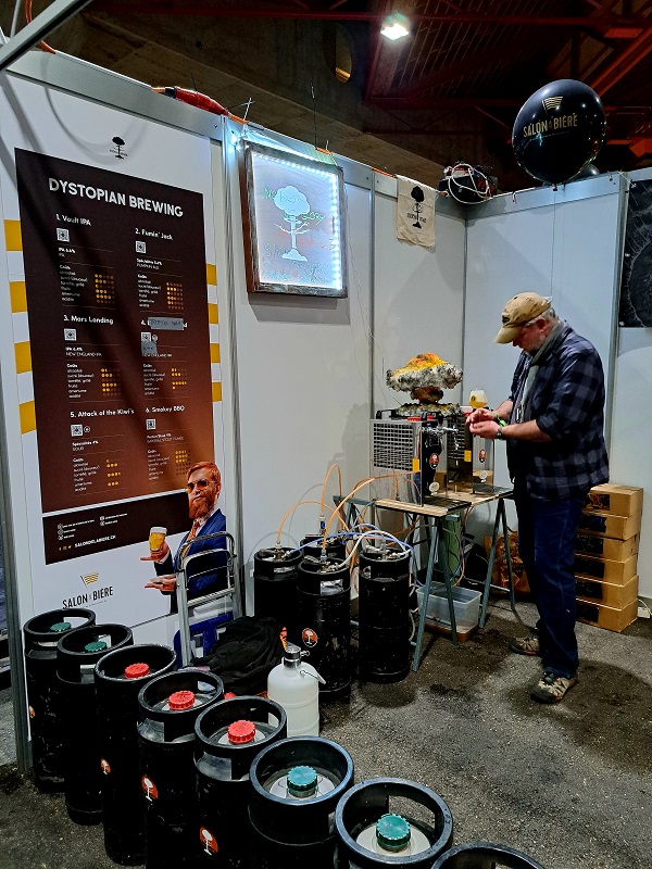 Es ist wirklich sehr angenehm am Salon de la Bière. Es hat genügend Platz, es herrscht eine lockere Stimmung und die Biere schmecken wunderbar. Wir schlendern von der einen zur nächsten Brauerei, geniessen tolle IPAs und NEIPAs, Pale Ales und Sauerbiere (jeweils 1.5 dl). Ich laden den Chip nochmals, damit wir an einem der vielen Foodtrucks den Hunger stillen können. Mit dem eigenen Telefon kann man jederzeit den Saldo auf dem Chip überprüfen. Sehr hilfreich und das Aufladen geht jeweils recht schnell.