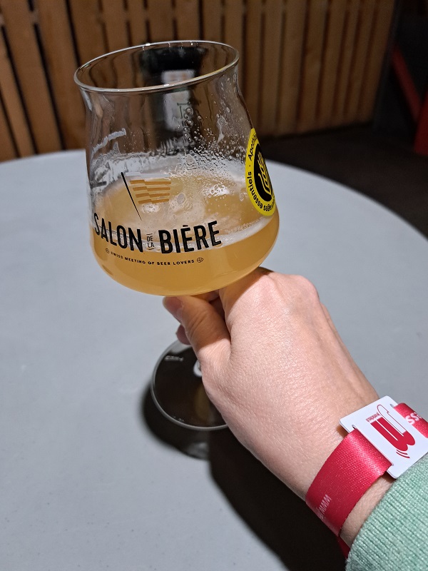 Wir begeben uns zuerst zum Empfang bzw wir werden freundlich winkend dazu aufgefordert, näher zu kommen. Für uns ist nicht klar, wie es nach dem Eingang weitergeht und nun sind wir froh, dass uns gesagt wird, wie das ganze funktioniert. Wir erhalten ein Glas und können auf den am Festivalband angebrachten Chip Geld laden. Der Salon de la Bière ist nämlich cashless. Das ist für die Brauereien und Foodtrucks sicher hilfreich, entfällt doch das Geldhandling. Die Aufladung kann man mit Bargeld oder einer der üblichen Karten begleichen. Die Biere starten bei CHF 1.- bzw 2.- pro 1.5 dl bzw ab CHF 3.- für 2.5 dl. Wir laden CHF 30.- als Startguthaben auf meinen Chip. Mal schauen, wie weit wir kommen.