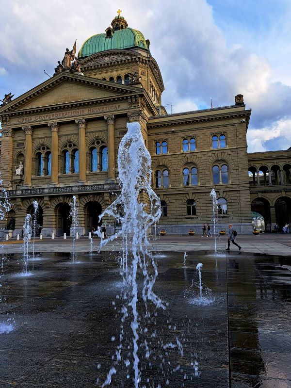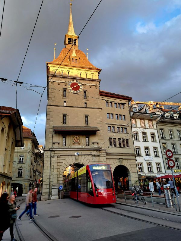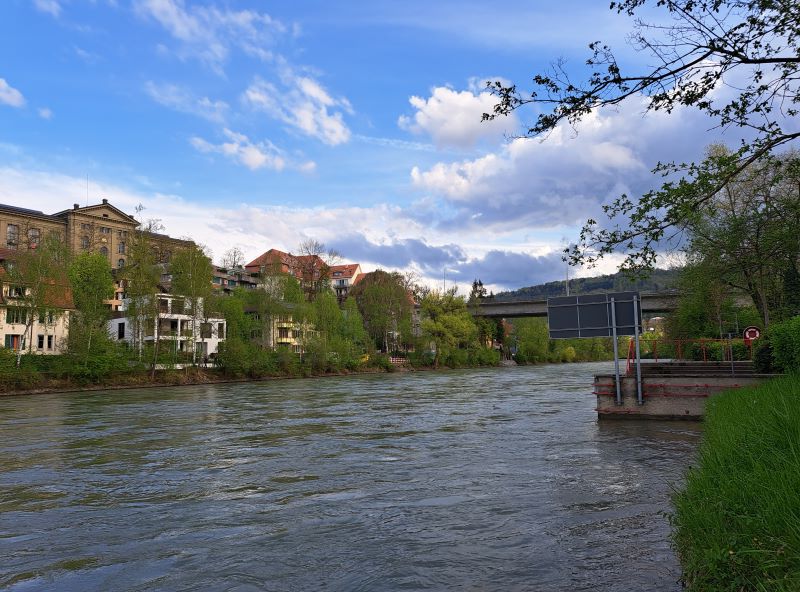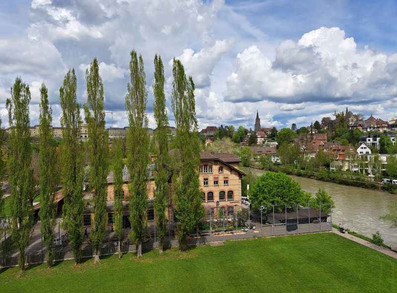 Wir sind früh unterwegs und kommen kurz nach 14 Uhr in Bern an. Bern ist nicht nur die Schweizer Bundeshauptstadt, die Altstadt mit dem historischen Stadtkern gehört zum UNESCO Weltkulturerbe. Wir entscheiden uns zu Fuss zur Dampfzentrale zu gehen. Vorbei an imposanten Sandsteingebäuden und entlang der Lauben (Arkaden) gelangen wir über den Bundesplatz zur Bundesterrasse, von welcher man einen fantastischen Blick auf das darunterliegende Marzili hat. In diesem Quartier befindet sich die Dampfzentrale. Die kürzeste Drahtseilbahn der Schweiz, die Marzilibahn (erbaut 1885), würde den Abstieg hinunter zum Fluss erleichtern. Wir nehmen aber für die gut 31 Höhenmeter den steilen Fussweg. Danach noch ein kurzes Stück an der Aare entlang bis zu unserem Ziel, der Dampfzentrale.