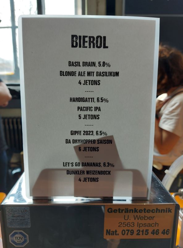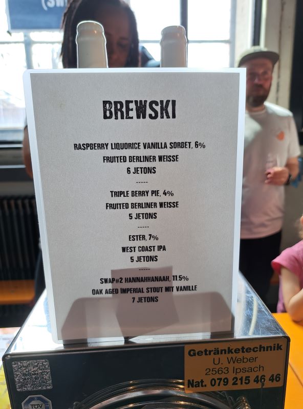 Den Eintritt (CHF 20.-) für das Festen Bierfestival haben wir uns online gekauft. Der Andrang ist nicht gross und so sind wir rasch im Besitz unseres Eintrittsbändels, dem inkludierten Degustationsglas (1.5 dl) und vier Jetons in Form eines Kronkorkens. Die Biere kosten zwischen zwei und sieben Jetons. Darum kaufen wir uns noch für CHF 40.- weitere Jetons.