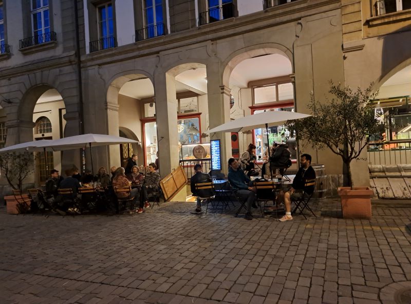 Im Aussenbereich hat es weitere Sitzgelegenheiten und es gibt ein feines Essensangebot von Jumi (zB einen Lambic-Hotdog oder ein geniales Apéro-Plättli). Perfekt also, um die Sonne und ein feines Bier zu geniessen.