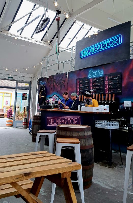 Unser eigentliches Ziel ist die Brauerei Neon Raptor. Seit 2016 werden am Standort Sneinton Market kreative und experimentelle Biere gebraut. Im eigenen Tap Room – The Rap Tap – kann man diese verkosten. Die Biere haben oft spezielle Namen, die an Dinosaurier erinnern. So gibt es das Rapt-O’s (Stout mit Haferflocken und Schokolade) oder das Slushasaurus (Sour Ale mit Himbeeren und Limetten).