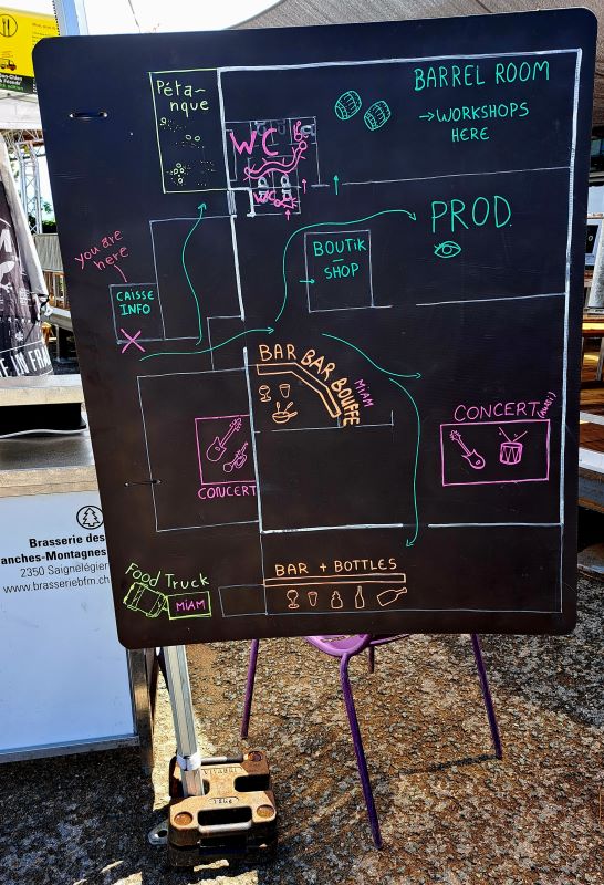 Wieder zurück müssen wir uns als erstes einen Eintritt kaufen. Für CHF 10.- erhält man ein Verkostungsglas plus einen Gutschein für ein Bier. Zusätzlich kann man sich eine Zahlkarte kaufen und die mit CHF 80.- (20 Biere + 2) oder CHF 120.- (30 Biere + 3) aufladen. Man kann die Karte auch im Shop/an der Bar einsetzen. Wir schnappen uns die Liste, mit allen Bieren, die ausgeschenkt werden und los geht’s.