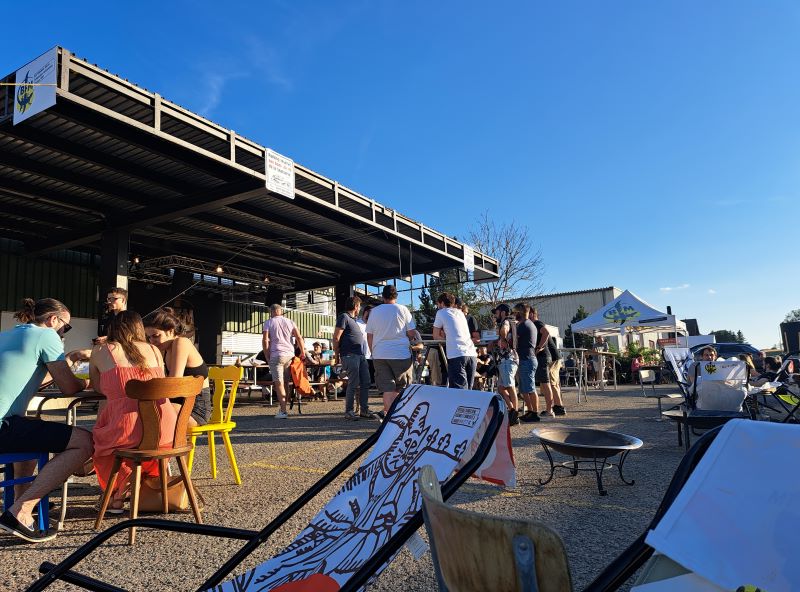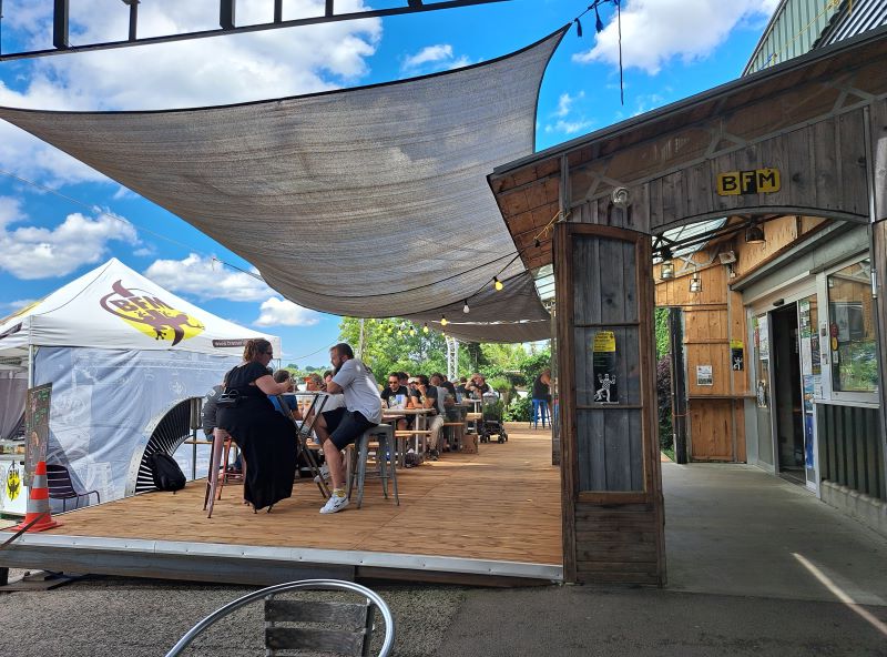 Es wird langsam Abend und einige unserer Freunde haben sich schon auf den Heimweg gemacht. Sie haben teilweise eine lange Fahrt mit dem öffentlichen Verkehr vor sich. Wir geniessen die letzten Sonnenstrahlen und zwei ’normale‘ Biere von BFM: das Koalager und das Saison Coing Coing (mit Quitte), eines meiner Lieblingsbiere.
