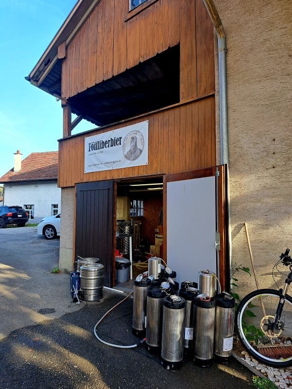 Als wir bei der Mikrobrauerei welche mitten im Dorf liegt ankommen, sitzt draussen eine muntere Gruppe von Gästen in der Nachmittagssonne und geniessen ihr Bier. Wir werden herzlich begrüsst und bald schon halten wir unser erstes Föifliberbier in der Hand. Bei unserem sonntäglichen Besuch gibt es vier Biere vom Zapfhahn: