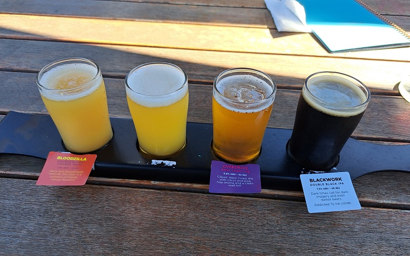 Die ‘richtigen’ Craftbiere können mit den günstigen Preisen der Grossen nicht mithalten. Darum findet man sie auch nicht in den genannten Bottle Shops. Möchte man regionale Craftbiere geniessen, muss man direkt zur Brauerei. Die meisten Craftbier Brauereien Australiens haben einen Taproom und sind in der Regel von Donnerstag bis Samstag geöffnet. Die Auswahl der Biere ist gross. War ein wichtiger Faktor bei der Planung der Etappen unserer Reise. Oft werden Tasting Paddle angeboten. So hat man die Möglichkeit vier bis fünf Biere zu verkosten. Meist sind es 50 ml Gläser. Es können aber auch 200 ml Gläser sein. Dann kann das Probieren aber zu einer Herausforderung werden.
