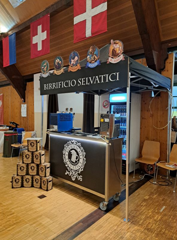 Selbstverständlich sind wir nicht die einzigen Deutschschweizer, welche schon um diese Zeit am Start sind. Einige Bierenthusiasten sind dem Ruf von Rolf Burkhard ins Tessin gefolgt. Und so bildet sich schnell eine Gruppe deutsch sprechender Besucher zum gemeinsamen verkosten.